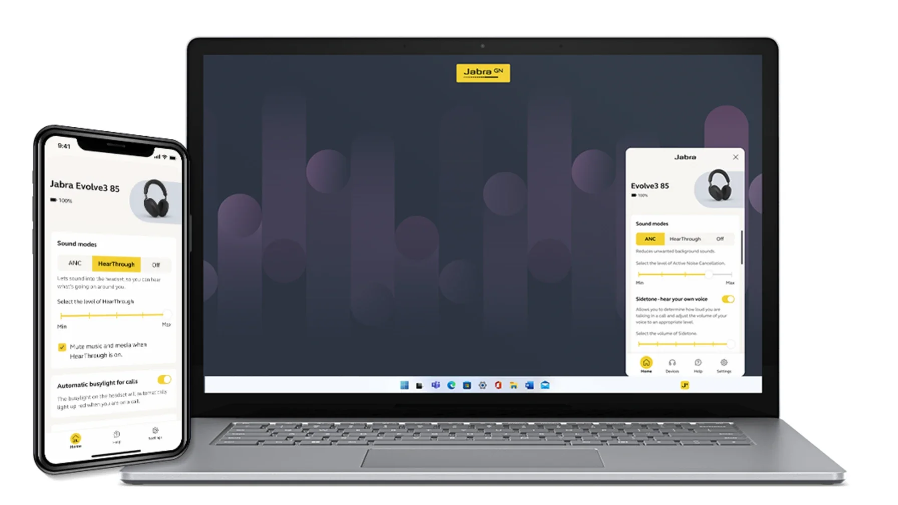 From an IT administration perspective, the Evolve3 integrates with Jabra Plus Management — a centralized dashboard for remote firmware updates, device configuration, and fleet health monitoring. Both models ship with a pre-paired Link 390 Bluetooth adapter for instant secure connectivity out of the box, and they support Bluetooth Native for direct device pairing when the adapter isn't needed.